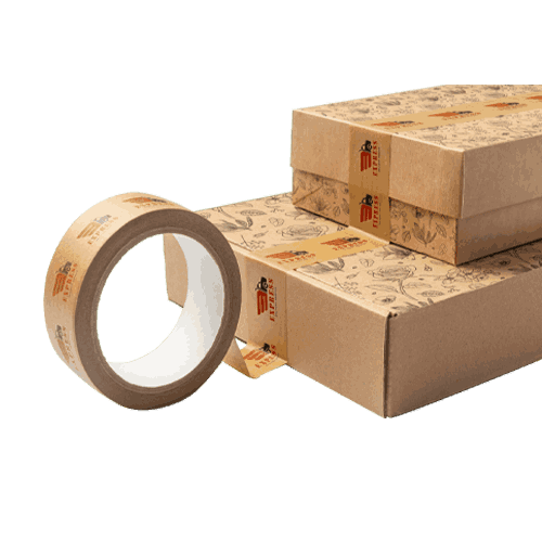 Q: Can I have continuous print on my tape rolls?A: Yes, you can have continuous print on your tapes. Please get in touch with our support team at 416-907-6181 for a custom quote. Q: What file formats should I send for the printing of my packaging tapes?A: Supported formats currently include Ai, EPS, PSD, and pdf. However, for highest quality results, we recommend creating the design in a CMYK file format. Q: What is a water-activated tape?A: Water-activated tape is a paper-based tape that feels dry before use and is activated by water. After a little bit of water is applied to the glued edge of the tape, the dry glue turns into a strong adhesive that adheres to cardboard and corrugated material easily. Q: Do I need special equipment to activate water-activated tape?A: While using a specialized tape dispenser is recommend, it is not compulsory. The tape can also be used with the aid of a wet sponge. When using a wet sponge, it is better to cut a portion of the tape and then apply water with the sponge. On the other hand, specialized water-activated tape dispensers have wet sponge rollers that moisten the tape as it pulled through. In addition, the perforated blades on the dispenser helps in cutting the tape evenly during application. Q: What are the advantages of using pressure-sensitive tape rolls?A: Pressure-sensitive tape rolls, commonly known as polypropylene tapes, provide a quick and easy solution to pack corrugated and cardboard packaging boxes. This type of tape is ideal for sealing both light and heavyweight boxes. Q: What are the most common types of custom printed tape rolls?A: Printed tape rolls can be manufactured using various types backing paper and adhesive types in order to ease of use. The most common types are: Water Activated Tape: Also referred to as gummed tape, this type of tap is made from a paper based backing paper and starch-based adhesive. Once moisturized with water, the starch-based adhesive is activated and can be applied easily to seal personalized cardboard boxes and recyclable corrugated mailers.The strong adhesive makes it suitable for securing paper mailers and packaging boxes commonly used for shipping. Heat Activated Tape: This type of tape is made from a thermoplastic film and the adhesive is activated only when both heat and pressure is applied during the application process. This type of tape is widely used in manufacturing apparel products, packaging textile products, and securing branded product boxes. Double Coated Tape: This is a pressure sensitive adhesive tape that is manufactured using foam, cloth, and paper material. The high temperature performance of this tape makes it ideal for use in settings where the tape may be exposed to extreme temperatures. Foam Tapes: Foam tapes are double coated tapes and are coated with acrylic or paper layer on both sides. This type of tape is widely used for mounting and sound damping purposes.